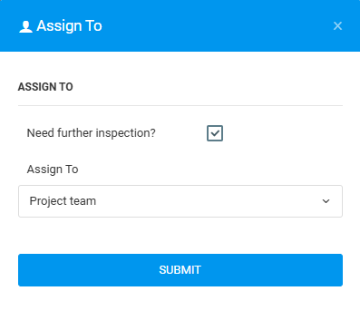 4. Fill in the details. Click on "Need further inspection?" and "Assign To". Then click "Submit".