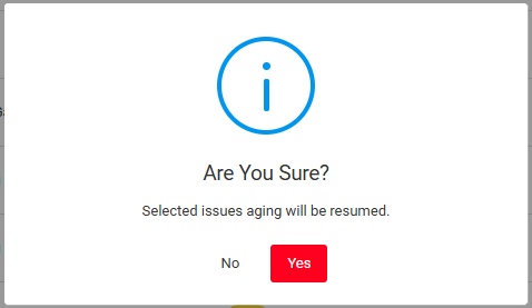 Resume aging issue means the admin reactivates the aging timer in the portal after it was paused. Once resumed, the system will continue counting the days from where it left off until the issue is resolved.