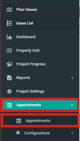 1. Select "Appointments" dropdown then click on "Appointments" from side menu.
