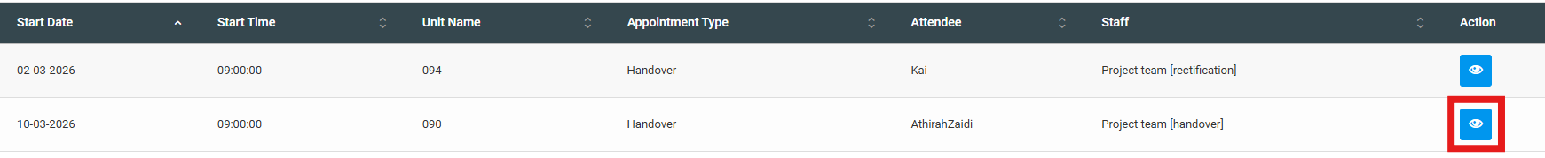 3. Select appointment that need to be reassigned staff then click on the "View" button.
