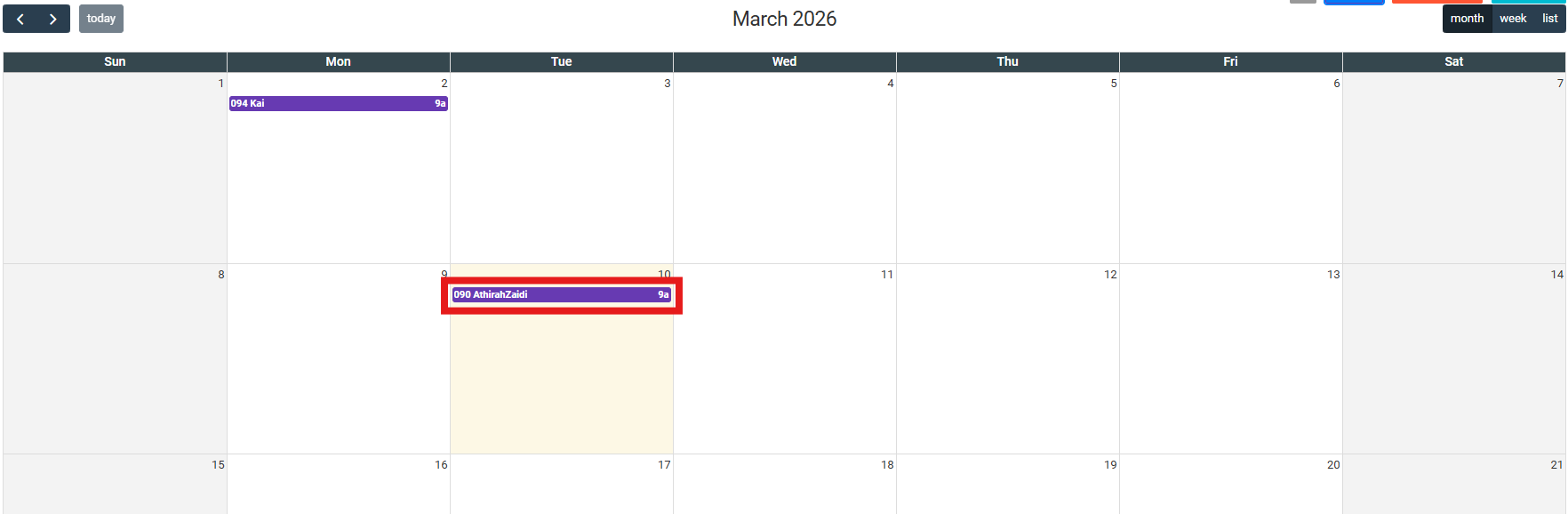 2. Click on an appointment.