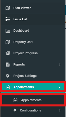 1. Select "Appointments" from the side menu.