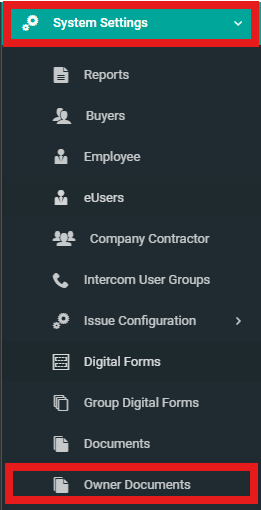1. Select "System Settings" from side menu and click "Owner Documents".