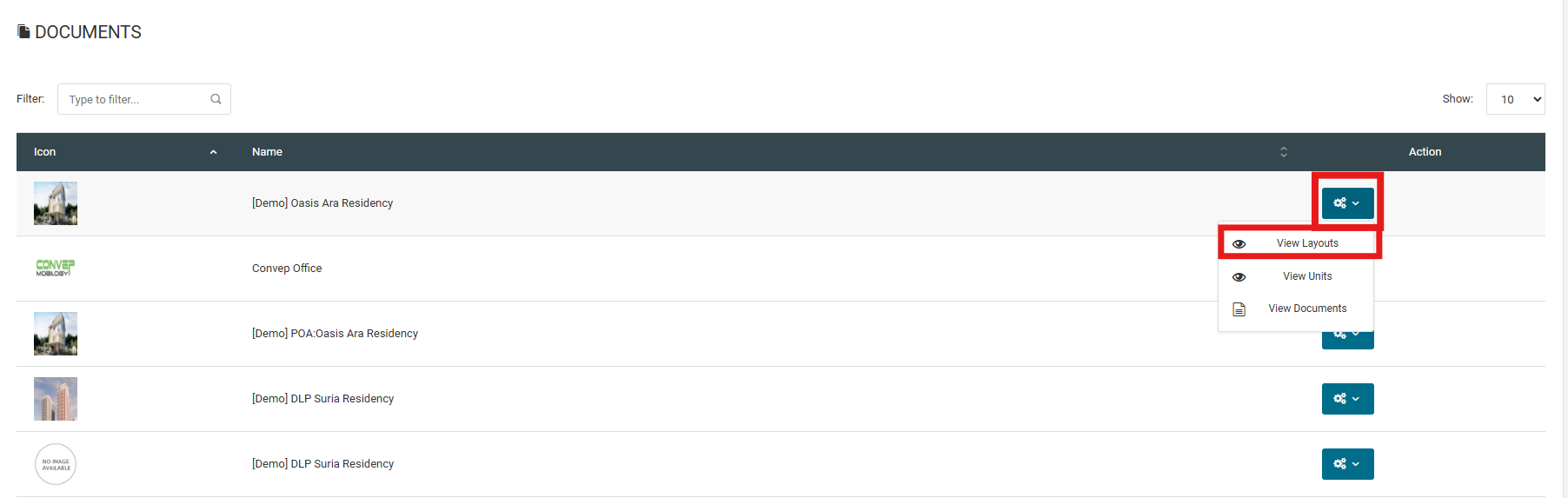 4. Click "View Documents" to upload related documents for the layout type.