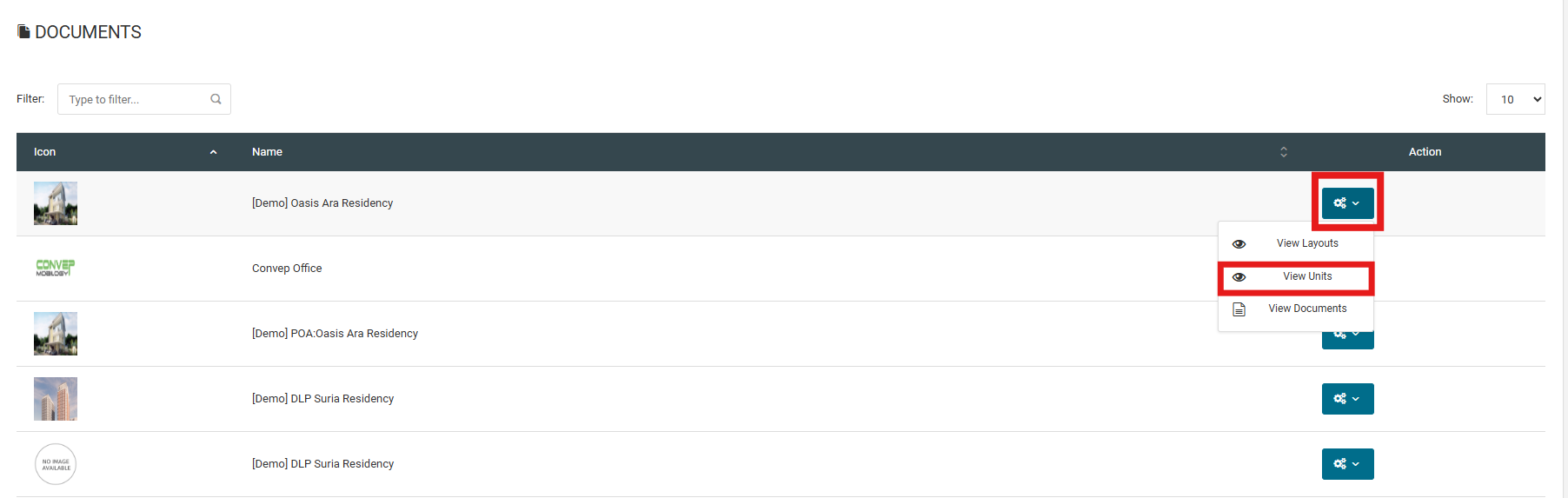 3. Click "View Units" to manage owner document for specific unit.