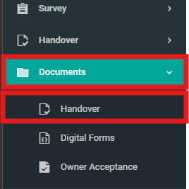 1. Select "Documents" from the side menu then click "Handover".