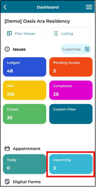 1. Click 'Upcoming' in appointment section.