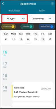 2. Click 'All Type' to filter appointment type.