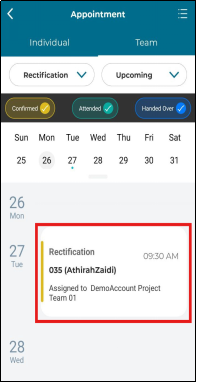 1. To cancel rectification appointment, click 'Upcoming' in the appointment section.