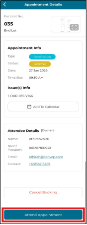 5. Click 'Attend Appointment' to attend to appointment.