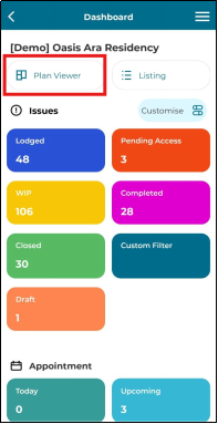 User can move issue to a new area inside the same location. This is applicable only for Lodged issue status. This function can only be done with Plan Viewer.
