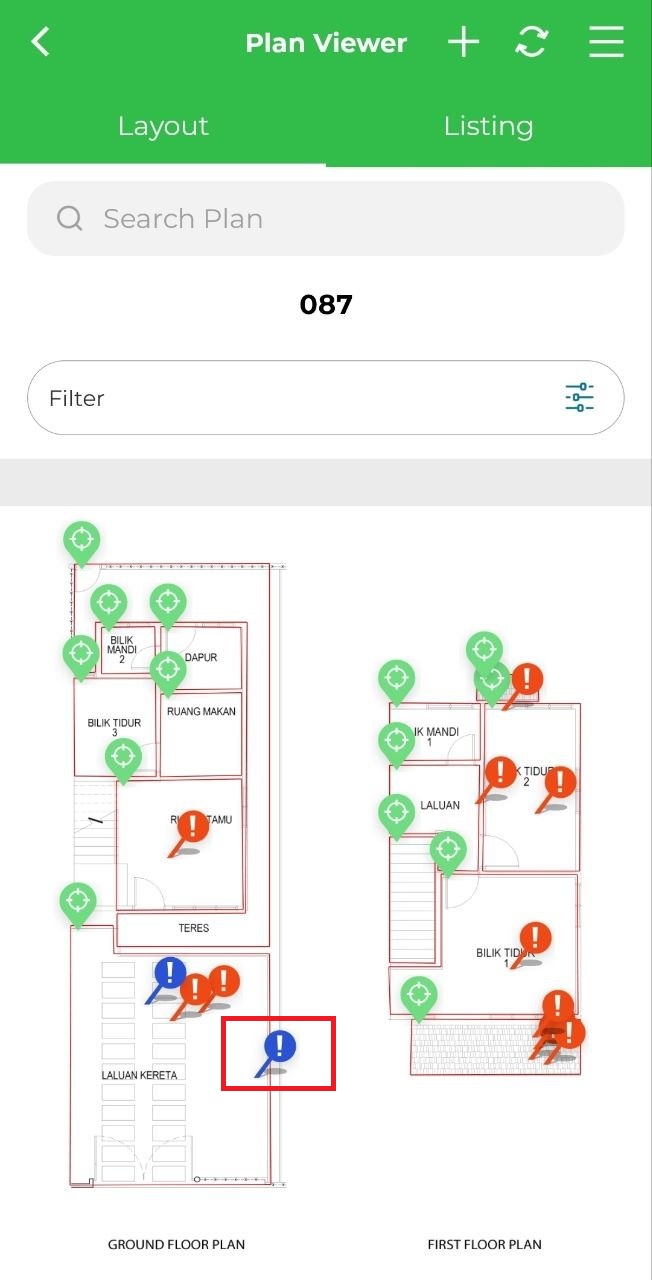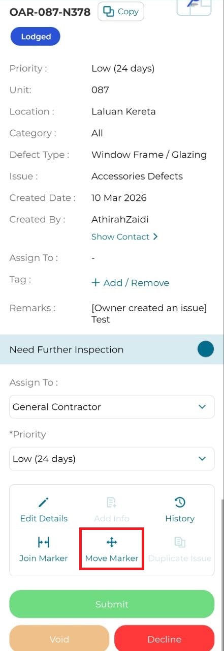 3. Click on lodged issue marker.