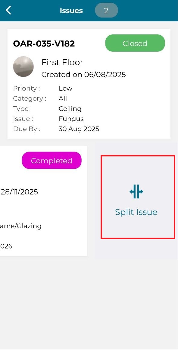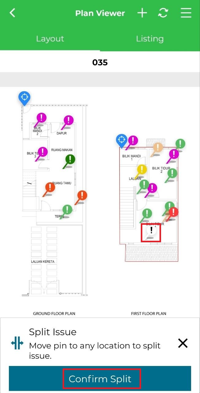 3. Move the white marker to pinpoint the issue in the area of that issue and click 'Confirm Split'.